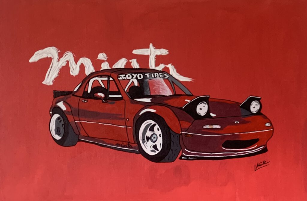 Der Mazda MX‑5, eine Ikone der Fahrkultur, überführt in eine neue, fast popkulturelle Bildsprache.
